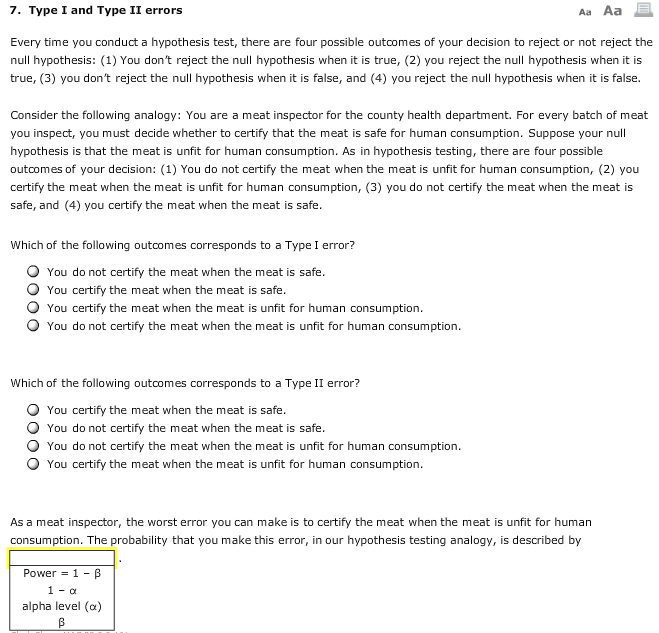 Solved 7 Type I And Type Ii Errors Aa Aa Every Time You Chegg Com