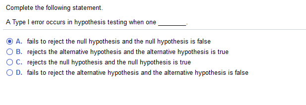 Solved Complete The Following Statement A Type I Error Chegg Com