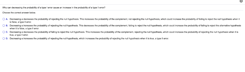 Solved Why Can Decreasing The Probability Of A Type I Error Chegg Com