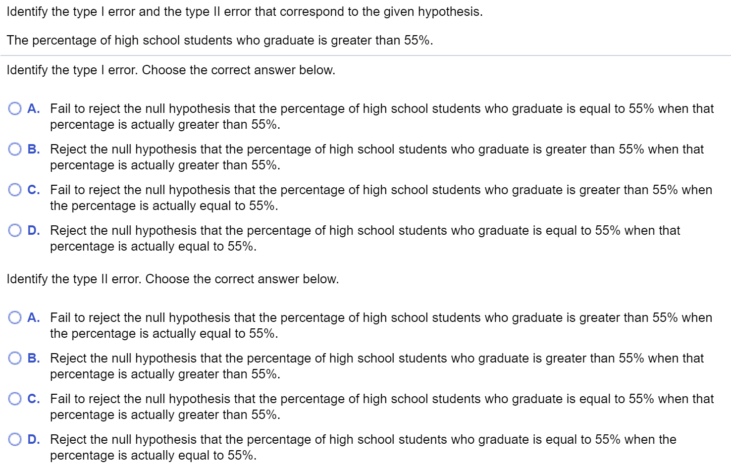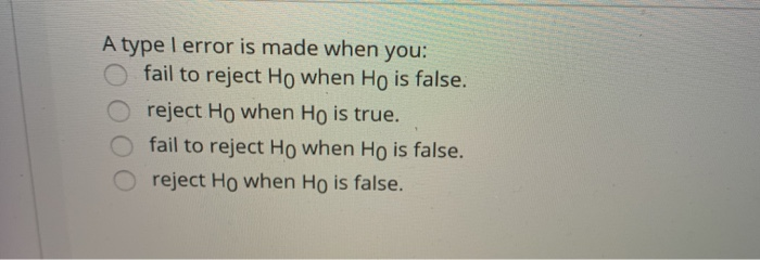 Solved A Type 1 Error Is Made When You O Fail To Reject Ho Chegg Com