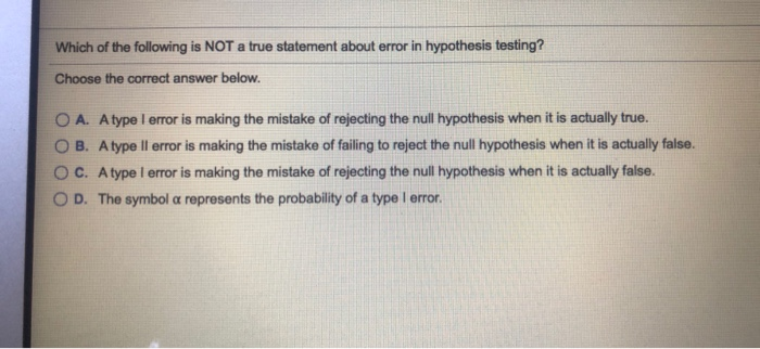 Solved Question 3 A Type I Error Is The Result Of Chegg Com